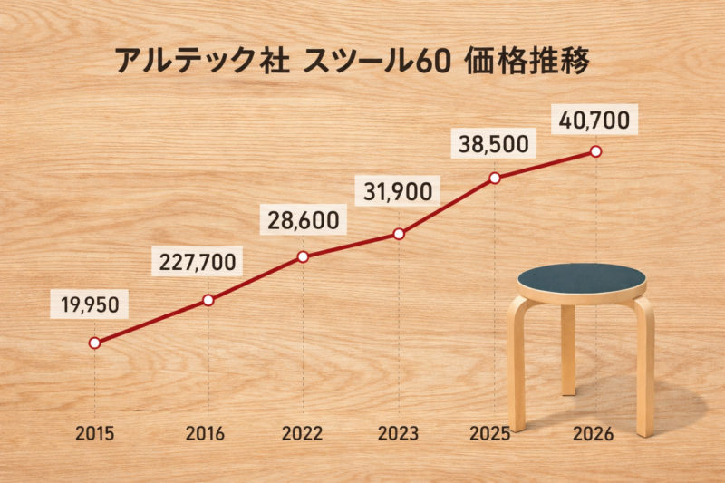 下記、スツール60 (ナチュラルラッカー)の価格推移(円)です。